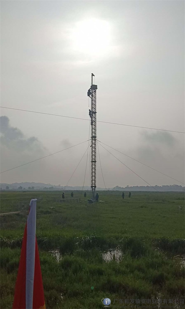 位于惠州市惠东县的铁海甲乙线在台风“山竹”期间发生倒塔和偏移的情况;110kV铁海甲线N18-N23耐张段长度为1406米,代表档距为282.8米,其中N19发生倒塔,N20发生偏移,全部沼泽地形,小运800米左右;广东和发ERS抢修部队连夜实地考察,并和南方电网惠州供电部门进行商讨,决定把N19N20水泥杆更换成ERS应急抢修塔,以恢复周边居民的用电。广东和发ERS抢修部队勇于担当,不怕苦不怕累,不惜人力物力,克服了现场陡坡、沼泽等艰险的地势环境,先是在抢修前对耐张段范围内所有塔及其导线进行检查,在抢修完成后送电前也一丝不苟地对线路进行巡检,最后完成核对相序及线路参数测试等工作。
