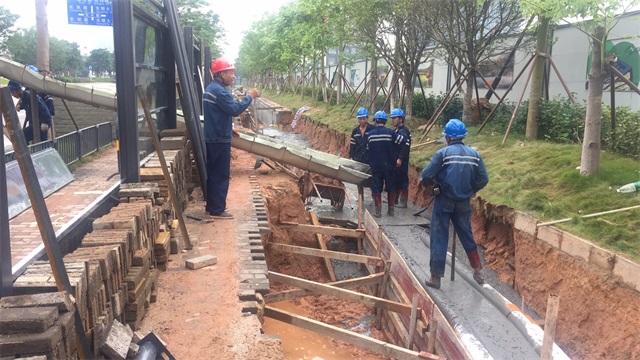 本次凤凰城220kV电力迁改工程主要对凤凰城片区影响智尚科技园、长深保障房、地铁六号线等项目建设的220KV育如线、500KV沙鹏甲线进行迁改。由于原220kV育如线N12塔处架空线路与拟开发的光明平板显示园人才住区冲突,本工程将220kV育如线架空线N6-N9塔段下地改为埋地电缆线路。期间,广东和发输变电安装有限公司施工内容包括:沿同业路、同惠路改造电缆综合沟至东长路,再沿东长路新建电缆沟至光侨路,左转沿光侨路新建电缆沟至A23点,顶管穿越光侨路至在建鹅颈西路,穿越鹅颈水后往东至新建电缆终端场,新建电缆路径1×3.1km;土建部分为新建电缆终端场一座。