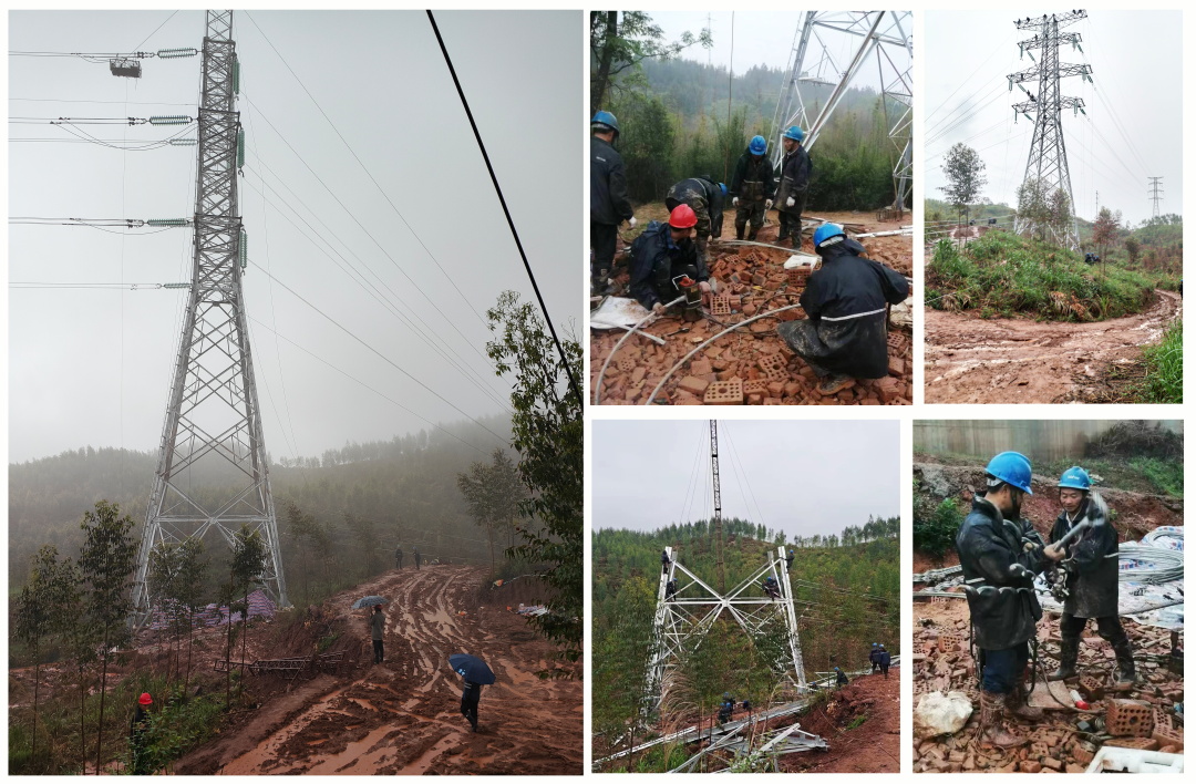 施工现场,高空人员穿雨衣在塔上施工,顾不上雨水顺着抓塔材的手流进衣服湿透全身,依然坚毅如刚,时刻在空中保证安全尽心尽力坚持工作地面一片泥泞,工人们深一脚浅一脚满身泥巴,努力把一件一件的配件送入空中组合一根根导线凌空升起看着施工人员忙碌的身影,让人感动和心疼。广东和发工作人员自觉加班加点,每天施工12小时以上,没有一个人临阵退缩,都坚持在工作岗位发挥自己的专业技能和团队协作能力经历这暴雨的洗礼。仿佛这一场持续大雨是专门为他们准备的,很多人认为如此恶劣天气下不可能完成的任务,广东和发经过14天的攻坚奋战后提前一天完成送电任务,并顺利通过验收,多次刷新了韶关多部门和电力同行们的眼界,得到了业主单位的高度认可和表扬