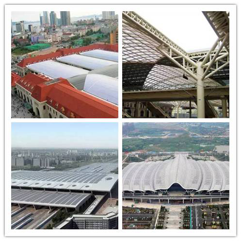高速铁路除了使用电力机车,能实施“以电代油”工程外,其新式的站房设计由于采用了新技术,实现了节能环保。比如,北京南站、武汉、广州火车站都采用了太阳能光伏发电技术,充分利用了太阳能这类绿色能源在铁路建设中的作用。