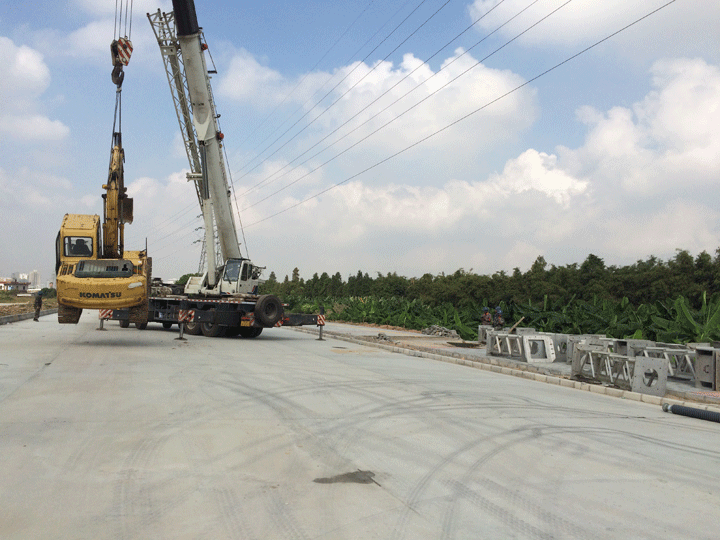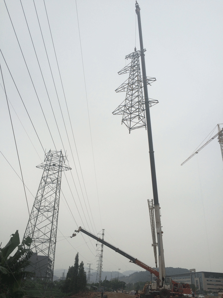110KV半逸甲乙线N57直线塔,因塔附件道路施工,造成地形变化,基础严重损坏(有附图),铁塔有1米倾斜。N57塔严重影响中山火炬开发区生产、生活及交通安全(距离路边15米)。我公司接到任务后,火速调配所有ERS抢险设备及抢险人员,从刚刚顺利完成任务的湛江(台风“彩虹”影响地)连夜赶到现场(中山),两地相距600公里。到现场后充分发挥我公司团结、和谐的实力仅用两天时间顺利完成党交给我们的任务(勘察、设计、材料调配、组塔、放紧线)。
