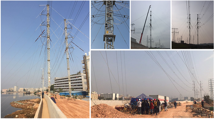 与会代表首先对ERS应用的成功案例——深圳外环高速项目中的220KV象创乙线临时线路、220KV奋琵乙线临时线路进行了实地考察。该项目位于沙井东宝河河边,线路全长1.857kM,由24基ERS转角塔形成的双回路临时供电线路,同期进行的有茅洲河整治工程、茅洲河堤岸加固工程、外环高速建设工程;面对复杂多变的情况,广东和发输变电安装有限公司的专利技术电力线路应急抢修系统(ERS)仅用了三天的时间就使得临时线路全部通电运行,临时线路在线运行37天,并于2017年12月30日成功完成临时转供电任务。